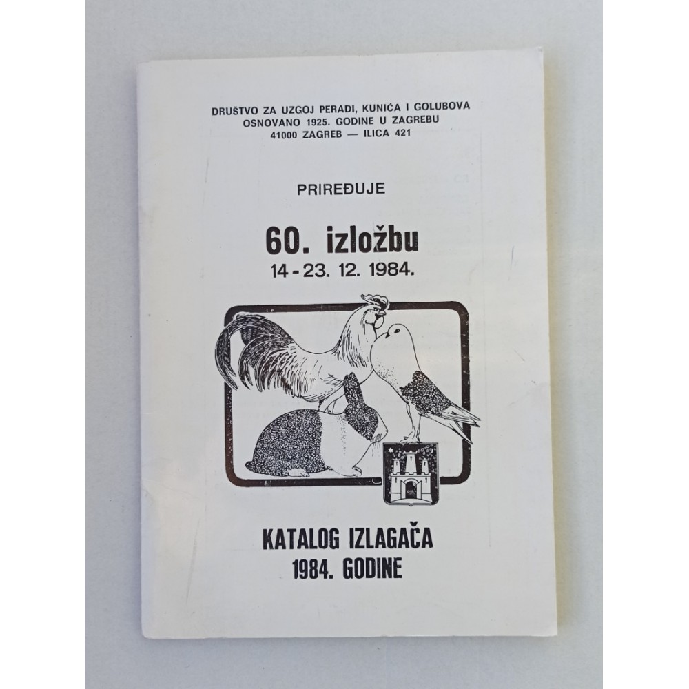 60. izložba 14-23.12.1984.Društvo za uzgoj peradi, kunića i golubova - Katalog izlagača 1984. godine - 32 str.