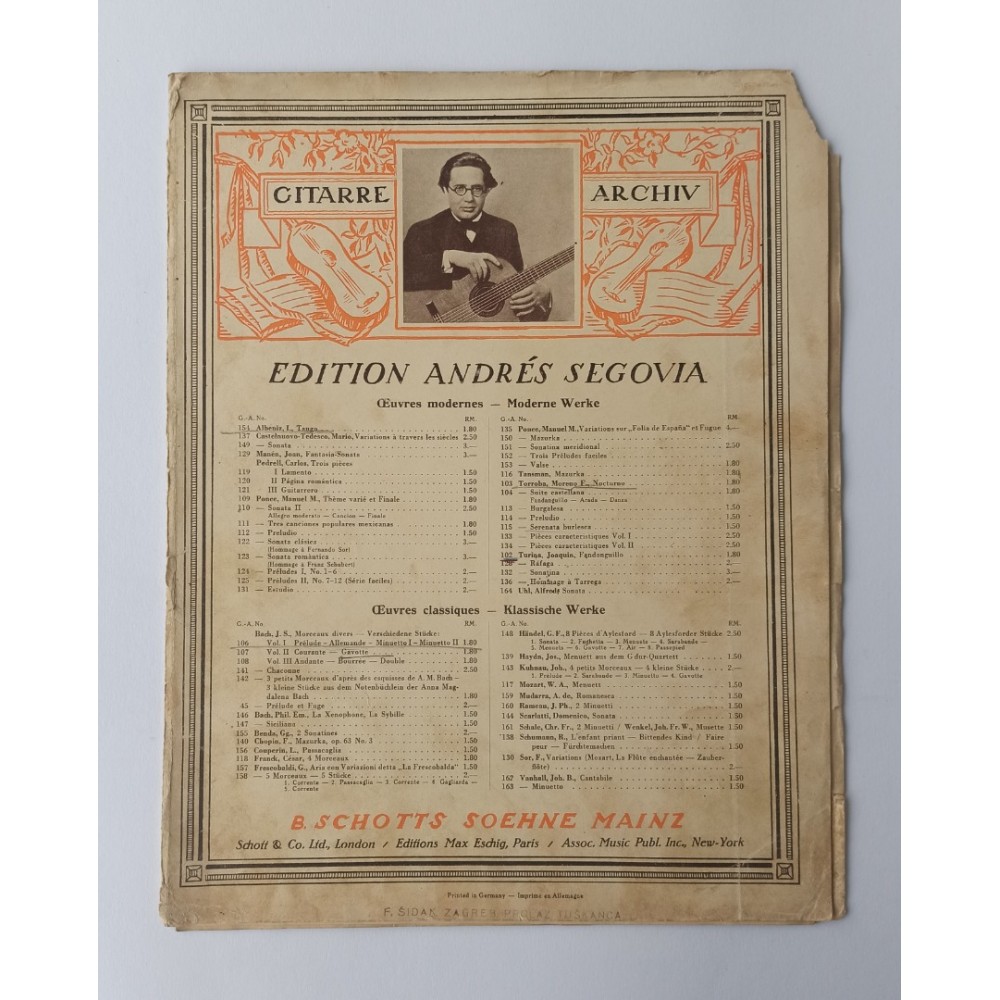 Joaquin TurinaEdition Andres Segovia - Fandanguillo - Stanje: Lošiji ovitak i rubovi