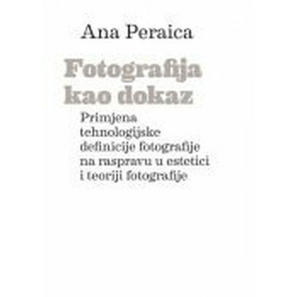 Medijska pismenost – imperativ digitalnog doba i danas jedna od temeljnih funkcionalnih pismenosti – nezamisliva je bez razumijevanja fotografije. U dobu "alternativnih istina", sveprisutnog društva nadziranja i relativno jednostavne manipulacije slikom, "Fotografija kao dokaz" Ane Peraice djelo je nužno ne samo za razumijevanje karakteristika fotografije već i za interpretaciju istih u širokom rasponu od društvenih posljedica računalno posredovane komunikacije, preko diseminacije audio-vizualnog sadržaja i forenzičke analize, do filozofijskih, etičkih i estetskih interpretacija. Kroz sedam poglavlja na 256 stranica (Dokazivost u fotografiji, Fotografija i filozofija, Fotografija kao znanje, Fotografija kao ontološki dokaz, Fotografija kao iskaz, "Filozofija fotografije", Fotografija kao političko sredstvo) knjiga povezuje tehničko-tehnološke karakteristike medija s društveno-humanističkom nadgradnjom – poduhvat iznimno rijedak u domaćoj, ali i prevedenoj literaturi. "Fotografija kao dokaz" nadrasta takav pristup i pokazuje, između ostaloga, da je za kvalitetno razumijevanje svakog medija nužno poći od i poznavati njegove intrinzične kvalitete, ograničenja i mogućnosti aplikacije, čime predstavlja izniman i jedinstven doprinos domaćoj literaturi na području estetike fotografije, ontologije fotografske slike, vizualne kulture i povijesti umjetnosti, kao i sociologije fotografije.