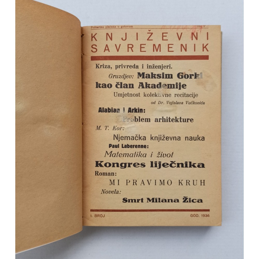 Uvezano prvih 10 brojeva 1936 godineKnjiževni savremenik - Časopis za sve kulturne probleme 1-10/1936 -