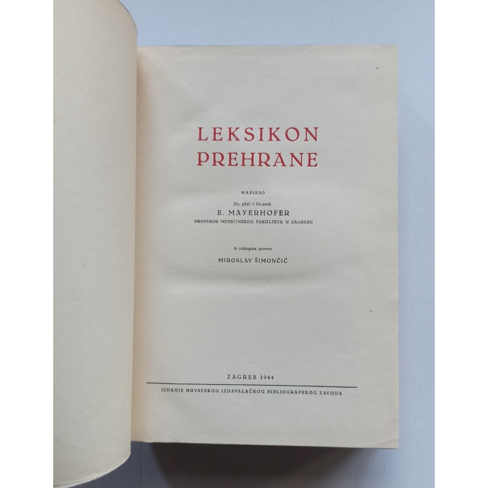 Napisao E. Mayerhofer profesor Medicinskog fakulteta u ZagrebuLeksikon prehrane -