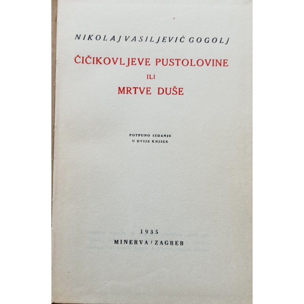 Stanje: RabljenoMrtve duše I-II - Čičikovljeve pustolovine ili Mrtve dušePotpuno izdanje u dvije knjigePreveo s ruskoga Iso Velikanović