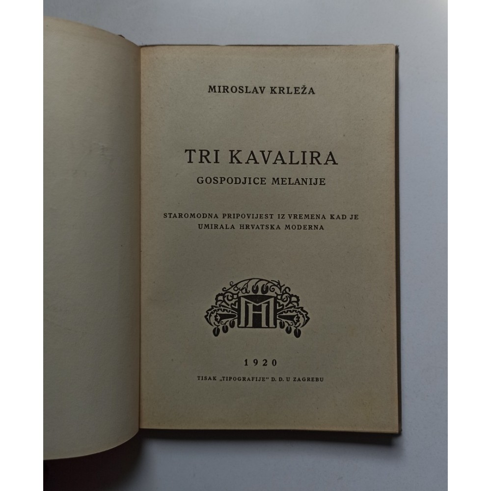 Miroslav KrležaTri kavalira gospodjice Melanije - Staromodna pripovijest iz vremena kad je umirala hrvatska moderna